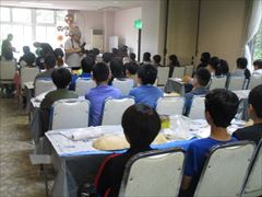 荷物を片付け、部屋の整理整頓をしたあと、ホールでふくべ細工体験を行いました。