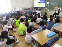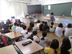 読み聞かせの様子、その6です。写真は6年生です。高学年の子供たちも、静かに聞き入っていました。「にじいろポッケ」の皆さん、ありがとうございました。(校長)
