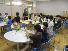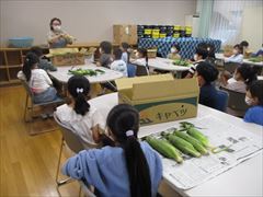 今日は、給食の食材となるとうもろこしの皮むきを3年生が1時間目に行いました。最初に栄養士からむき方について教わり、1人1本ずつ、皮をむきました。(校長)