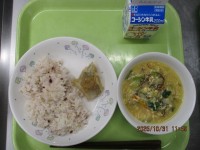 ごはん ししゃものから揚げ 野菜のからし和え しめじのすまし汁 牛乳