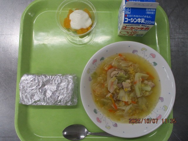 きなこあげパン ワンタンスープ 冷凍みかん 牛乳
