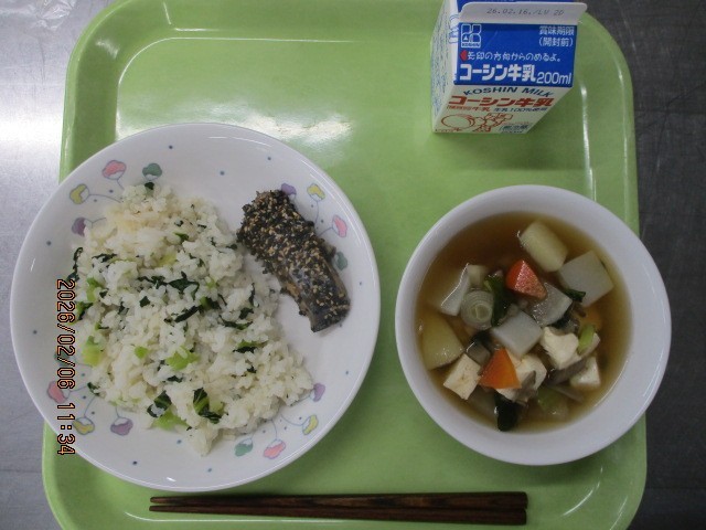 菜めし さわらの南部焼き けんちん汁 牛乳