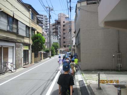 6月16日(金)の3、4時間目に生活科の学習で町探検に行きました。子どもたちが普段生活している町を歩きながら観察することで、自分たちの身の回りにはいろいろなお店や施設などがあり、いろいろな人に支えられながら生活していることに気付くための学習です。