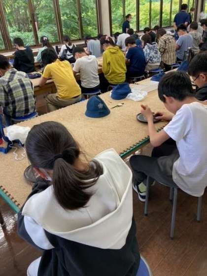 みんな真剣に、集中して練習布に針を通しています。慣れるのが早く、あっという間に最後まで縫い終わる子もいれば、ゆっくりと時間をかけて丁寧に縫い進める子もいます。早くできた子は困っている子を助けるなど友達同士で教え合い、みんな最後まで縫うことができました。