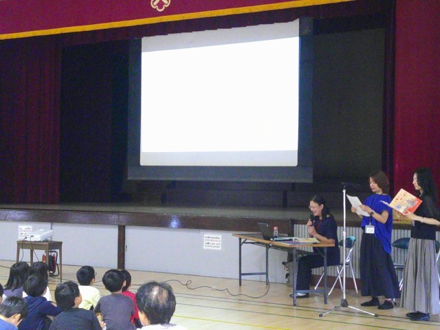 2校時に全学級で道徳授業を公開し、3校時は1、2年生に向けて体育館で「お話読み隊」の読み聞かせとともに、道徳主任から、道徳授業についての説明を行いました。参加くださった70名ほどの保護者、地域の方々にも短い時間でしたが意見交換をしていただきました。