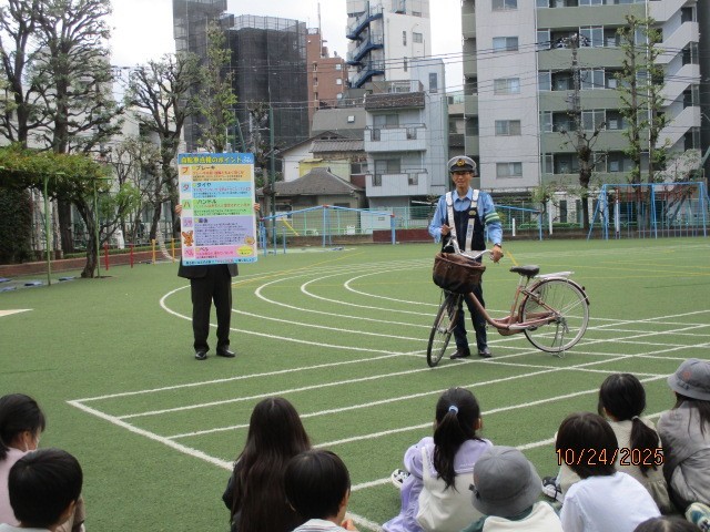 10月24日(金)に3年生を対象とした自転車教室が行われました。板橋区の方から自転車の安全な乗り方について学び、筆記テストでは参加者全員が試験に合格することができました。また、実技では警察の方に教えていただいたことを確かめながら実際に自転車に乗り、安全意識を高めることができました。
