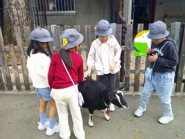 東板橋公園で、動物とのふれあいや秋探しの活動を行いました。公園では、モルモットやヤギ、ポニーとふれあい、体の大きさや動き、手ざわりに気づきながら楽しんでいました。