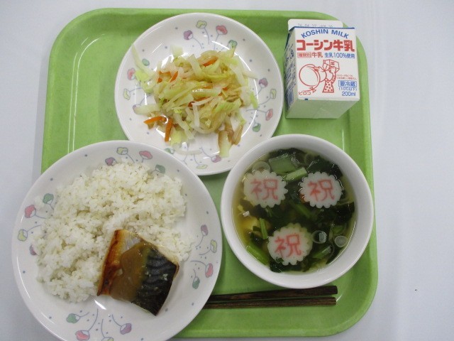 今日の給食では1年生の入学と、2年生以上の進級をお祝いして「お祝いすまし汁」が出ました。