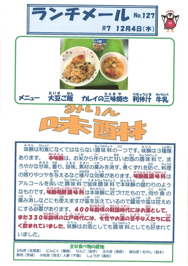 献立表・食育だより