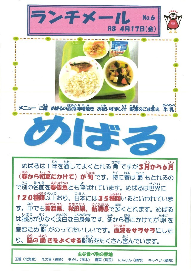 献立表・食育だより