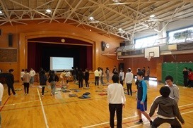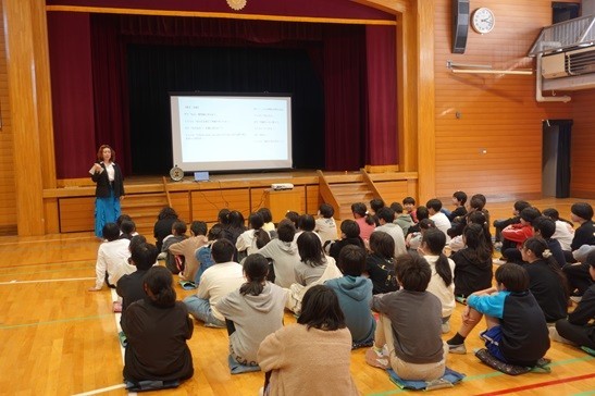 腹式呼吸の仕方や声の強弱の付け方を漫才を通して教えていただきました。子どもたちは楽しみながら声の出し方を学んでいました。