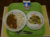 ★今日の給食★牛乳ごはんのりの佃煮五目肉じゃが野菜のからしあえ★食材の産地★人参:千葉県 玉ねぎ:北海道じゃがいも:北海道 もやし:群馬県小松菜:茨城県 豚肉:茨城県