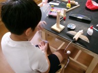 図工の時間に、木材と紙粘土を使ってゆらゆらゆれる鳥を作りました。止まり木の木の太...