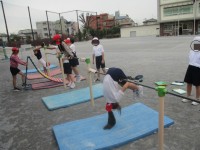 3年生では校庭体育で「Tボール」しています。バットを振ることもはじめての児童も多...