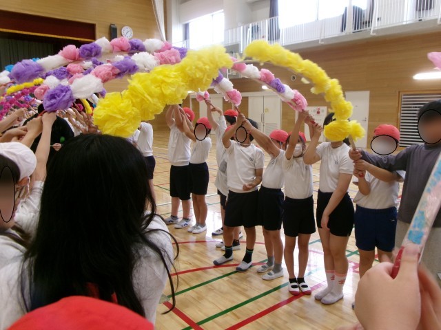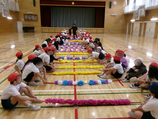 【5年】花のアーチ練習(1年生を迎える会)