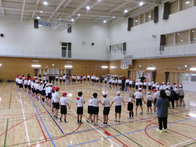 倉渕移動教室に向けて、フォークダンスの練習をしました。全員で手をつないで「マイムマイム」や「ジンギスカン」の曲に合わせて元気に楽しくダンスをしました。