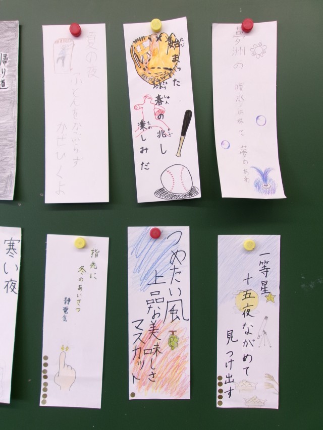 すでのクラスの児童が良いと思った句にシールを貼っていました。私は写真を撮って、校長室に戻りじっくり選びました。そして、作り手の心境なども想像しながら、いくつか選びました。6年生が詠んだ句、皆さんはどの句を選び楽しめましたか。