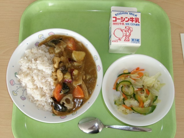 学校給食の定番、カレーライス。今回は秋野菜をふんだんに使った秋野菜カレーライスです。