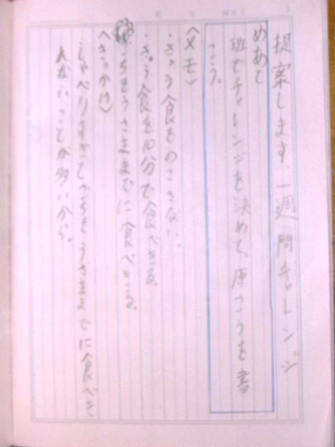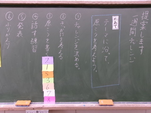 5年生が国語の学習で、「提案します、一週間チャレンジ!」に取り組んでいます。