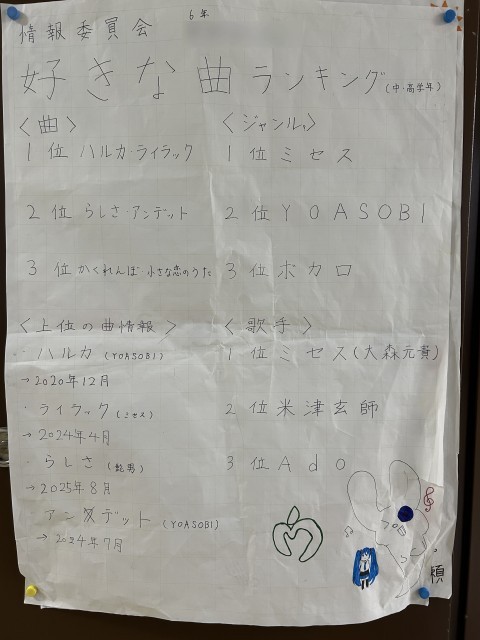 6年生がいろいろと調査をして、ランキングにまとめてくれました。