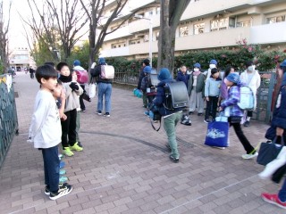 凜とした冬の空気に、3年生が元気なあいさつを、たくさん届けてくれました。