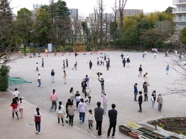 登校後、子どもたちが元気に校庭へ繰り出してきました。今朝は朝遊びの曜日です。登校前、一時的に小雪がわずかに舞う曇り空でしたが、先週まで行ってき「たなわとびチャレンジ」の続きをする子、ボールを使って遊ぶ子の姿と元気な声が校庭にありました。