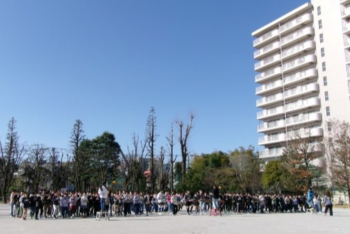 5年生の鼓笛隊が校庭で初練習をしました。