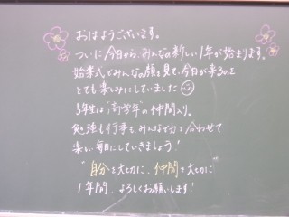 各学級では、担任の自己紹介などから始まり、学級開きが行われました。どの学級での子どもたちは少し緊張しながらも期待感をのぞかせていました。焦る必要はありません。一つ一つ新たな環境になれながら、相手のことを知りながら、自分を上手に表現していってほしいです。