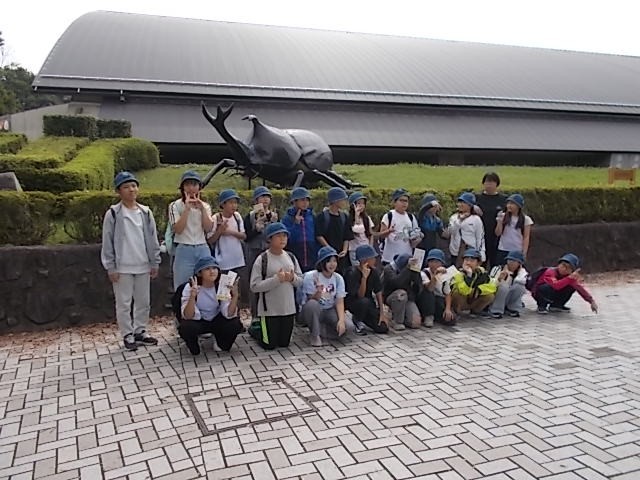 自然史博物館の外でクラスごとに 集合写真を撮りました。