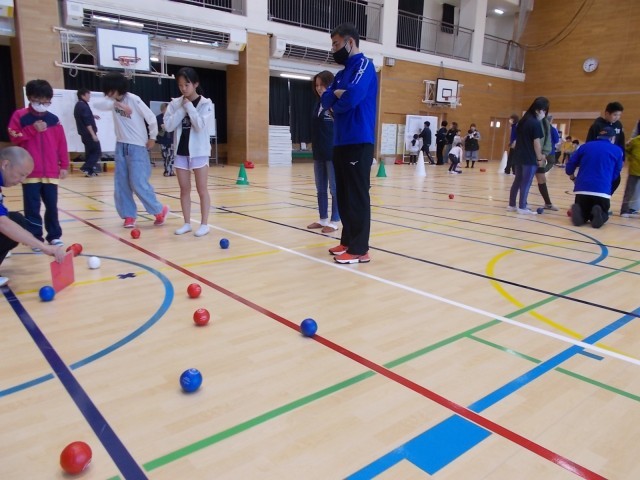 ボッチャの魅力を体感していました。