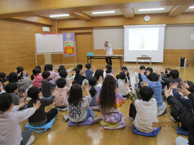 今日は、ヤクルトさんが「おなか元気教室」の出前授業に来て下さりました。