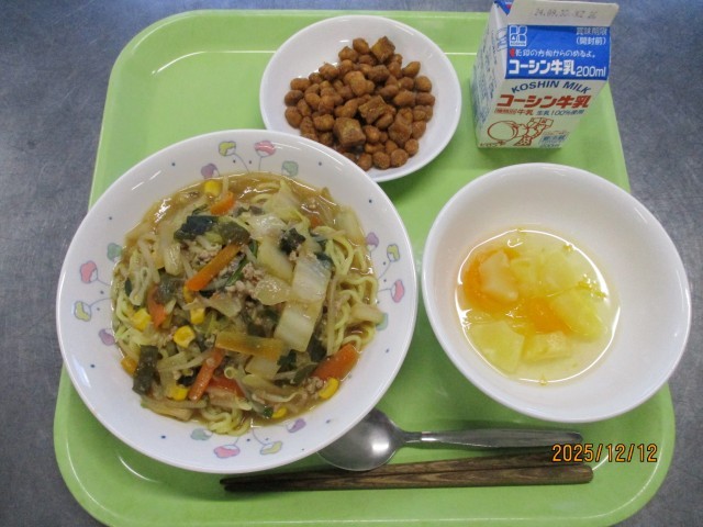 みそラーメンは、5年2組と先生チームのリクエストです。そして、かりんとうには栽培委員さんたちが育てて収穫したさつまいもを使用しました。子どもたちの力が集まってできた、学校らしさがあふれる、あたたかい献立になりました。