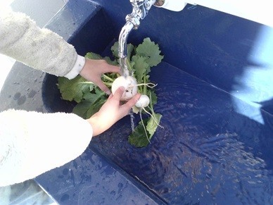 種から育ててきたカブの収穫と試食をしました。