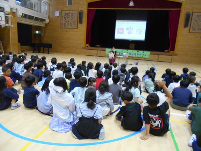 同日にセーフティ教室も行いました。全国読売防犯協力会から講師に来ていただき、低学年は安全対策について、高学年はスマホ・インターネットの利用の仕方についてお話いただきました。