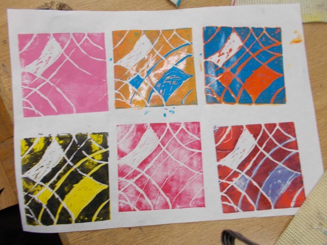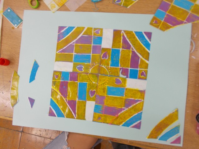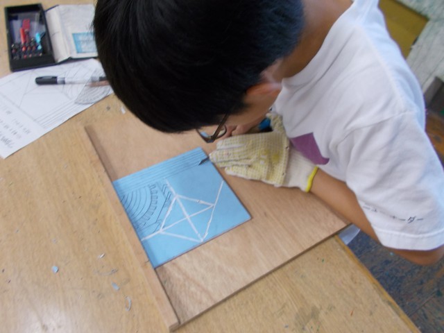 ほり進み版画は模様がどんどんカラフルに、複雑になっていくところが楽しいところです。