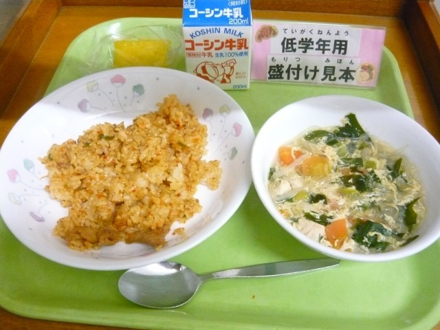 今日は、みんなが大好きな「キムチチャーハン」でしたが、お休みが多く残念でした。今週の21日(金)に予定していました、「揚げパンセレクト」給食もお休みが多いため中止といたします。来年1月に、改めて「揚げパンセレクト」給食として実地いたしますので楽しみにしていてください。