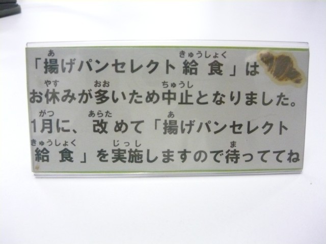 ☺スマイル給食第二弾☺として、「揚げパンセレクト」を予定していましたが、今回は、体調不良でお休みが多く、残念ながら中止とさせていただきました。せっかく楽しみにしていたのにごめんなさい。今回のアンケートはそのままに、1月の給食にて「揚げパンセレクト給食」として提供しますので、楽しみに待っていてください。自分の選んだパンは、忘れないでくださいね。今日は、みんな同じ「揚げパン(砂糖)」です。揚げパンは、加賀小の人気メニューの一つです。パンを揚げて、一つ一つ丁寧に砂糖をまぶすのでとっても手間がかかる作業です。給食室の方が、愛情込めて作ってくれました。感謝していただきましょう。