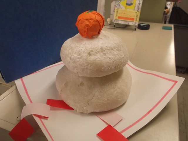 子供たちがついたおもちはもちつき係の方々が立派な鏡もちにしてくださり、校内に飾っています。