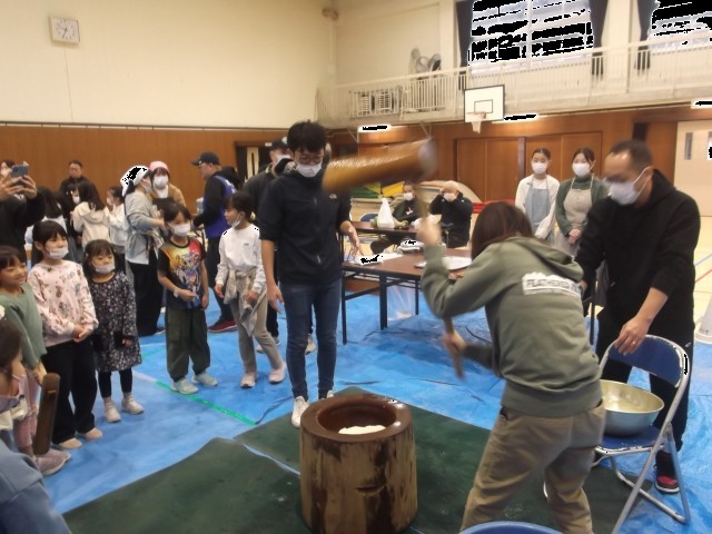 当日は、事前申し込みをしていた100人以上の子供たちが集まり、もちつきを体験しました。