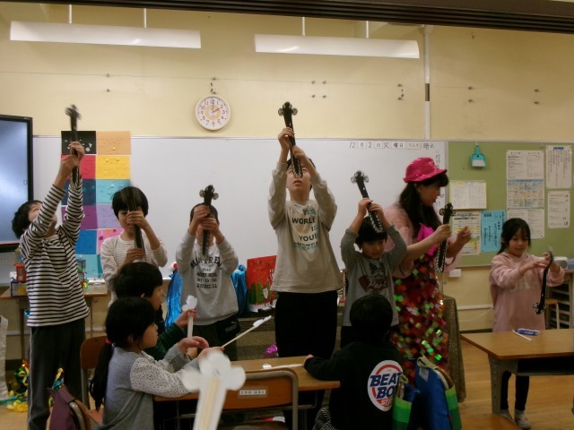 うなぎのマジックをみんなで作り、上手に見せられるように練習しました。