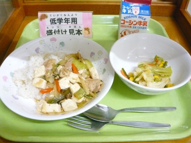 今日は、豚肉やたまねぎ・にんじんなどの野菜と一緒にオイスターソースで中華風に味付けをしました。
