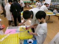 「先生、下糸が上手くいきません…」「間違って口の部分を重ねて縫ってしまいました…」という声もちらほら聞こえていますが、完成に近付いてきています。