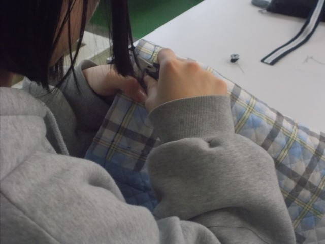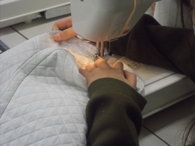 5年生の頃に学んだミシンの使い方を思い出しながら、一生懸命取り組んでいます!