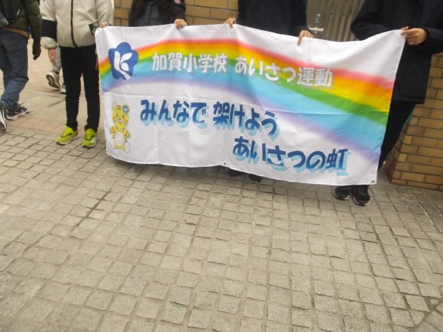 今回も加賀中学校の生徒が加賀小まで来て、いっしょにあいさつを行ってくれました。