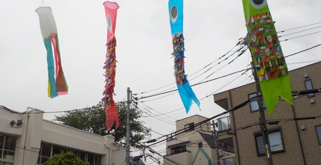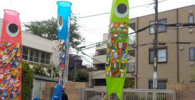 当日、赤・青・緑の大きなこいのぼりが昇ると、大きな拍手と歓声が沸き起こりました。