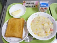 今日の給食2月27日(金)◎シナモントースト◎米粉のシチュー◎りんご◎牛乳★シナ...