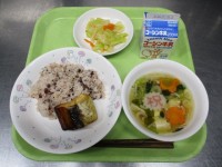 ・牛乳・ごまごはん・魚のレモン風味・みそ汁・くだもの(いちご) 食材 (産地) ...
