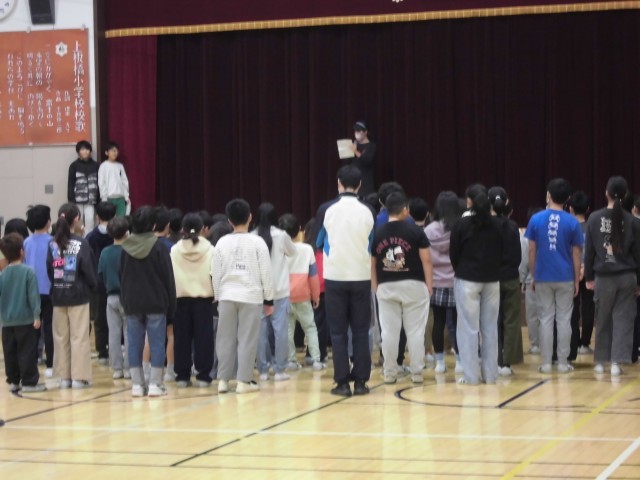 11月26日(水)児童集会「だるまさんがころんだ」を行いました。みんなで少しずつ前に進み、振り返るのに合わせて止まって・・・大人数で行うだるまさんがころんだは迫力があり、とてもたのしかったです。委員会のみなさんありがとうございました。