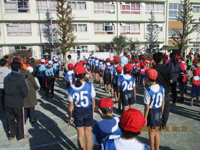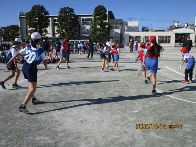 12月12日(金)、寒風強く砂埃の舞う徳丸小校庭で実施されました。主に低学年児童はPK合戦の試合で2試合を、主に高学年児童はリーグ戦(ゲーム)で5試合戦いました。日ごろの体育での練習成果を発揮し、意欲的・積極的に活動することができました。結果はPK合戦は4位で、ゲームでは優勝することができました。多くの保護者が応援に来てくれ、熱い戦いがコート内外で繰り広げられました。去年は学級閉鎖で不参加でしたが、ゲームでの優勝は嬉しい結果であり、思い出に残る1日になりました。