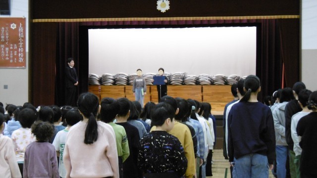 始業式では、校長先生から「目標をもつこと」や「次に向けた準備の大切さ」についてのお話がありました。また、4年生の児童代表の言葉では、2学期に頑張ったことや3学期に頑張りたいこと、これから挑戦したいことについて発表してくれました。